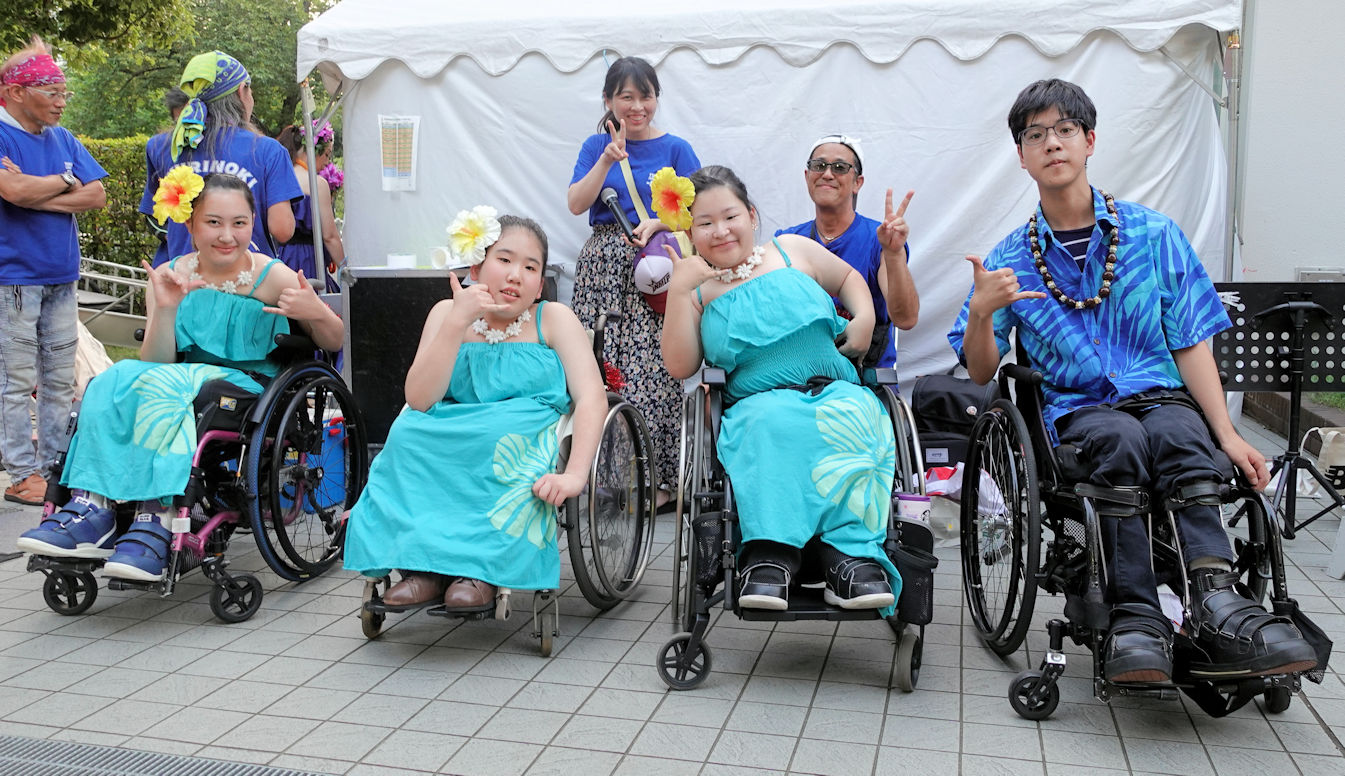 私たちは楽しくなければフラじゃない!をモットーに年齢、性別、障害の壁をやぶり、バリアフリーフラとして活動しています。安心して出演できるステージは少ないですが、 このゆりの木夏まつりは、スタッフの皆様、お客様に支えられ安心して出演できます。大変感謝しています。どうか私たちの最高の笑顔と心を込めて踊るフラで皆様に元気と勇気が届きますように。