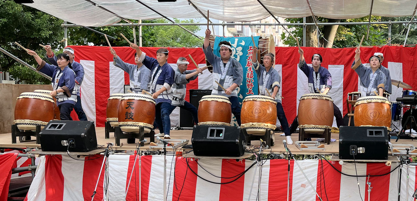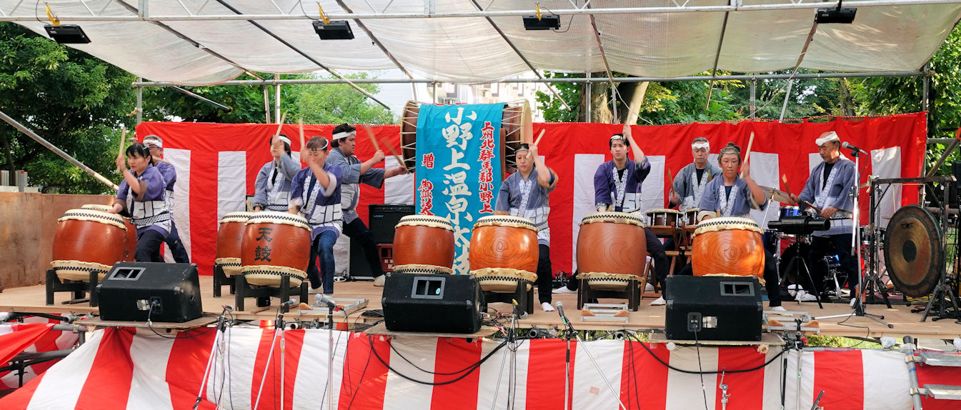 上州小野上-温泉太鼓保存会は[若者たちによる村おこし]として昭和60年に発足、長野県「御諏訪太鼓」(おすわだいこ)に学び「太鼓道」の基本として活動を行っています。本年は、結成40年目となります。